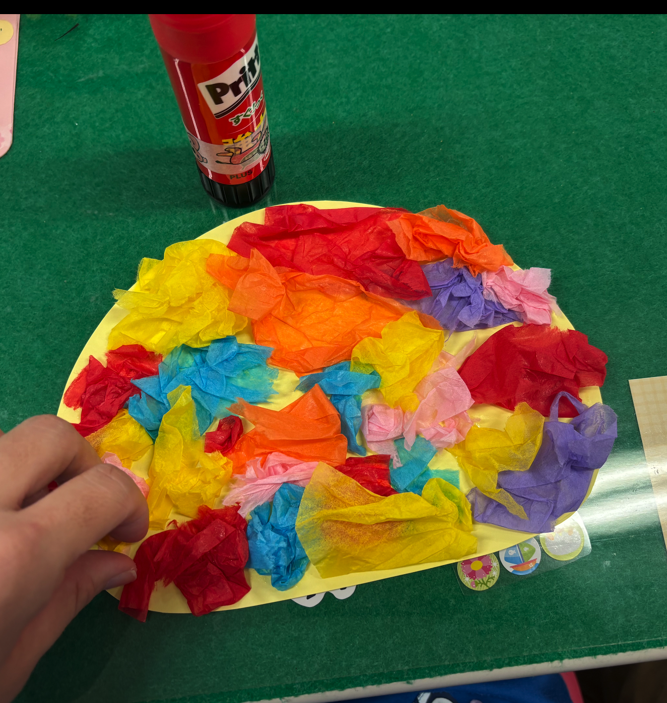 最後は、子どもたちがちぎった花紙を使って製作を行いました。