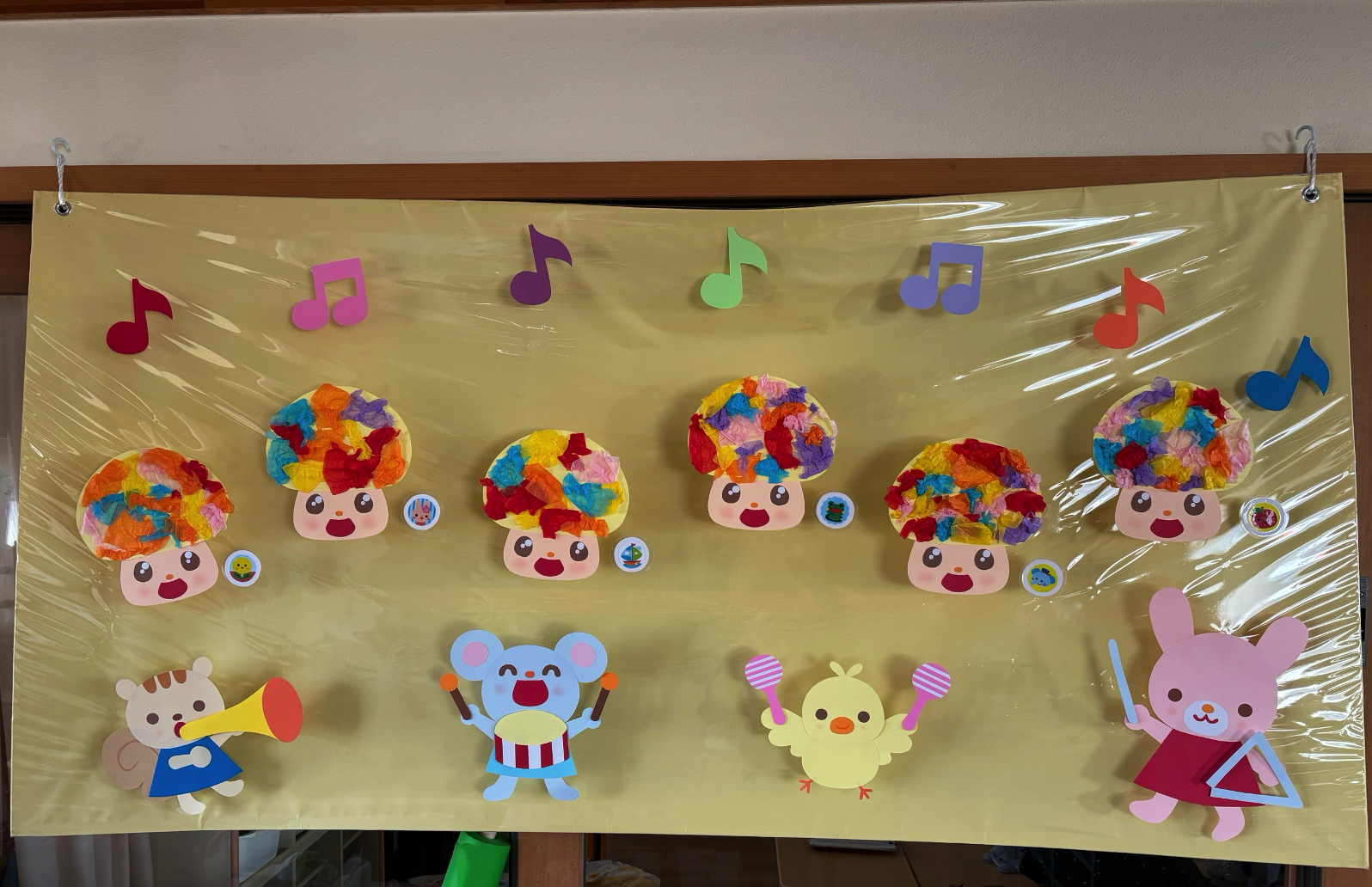 柔らかくて軽い素材の花紙を使って、「ちぎったり、まるめたり」思う存分に楽しみました。
