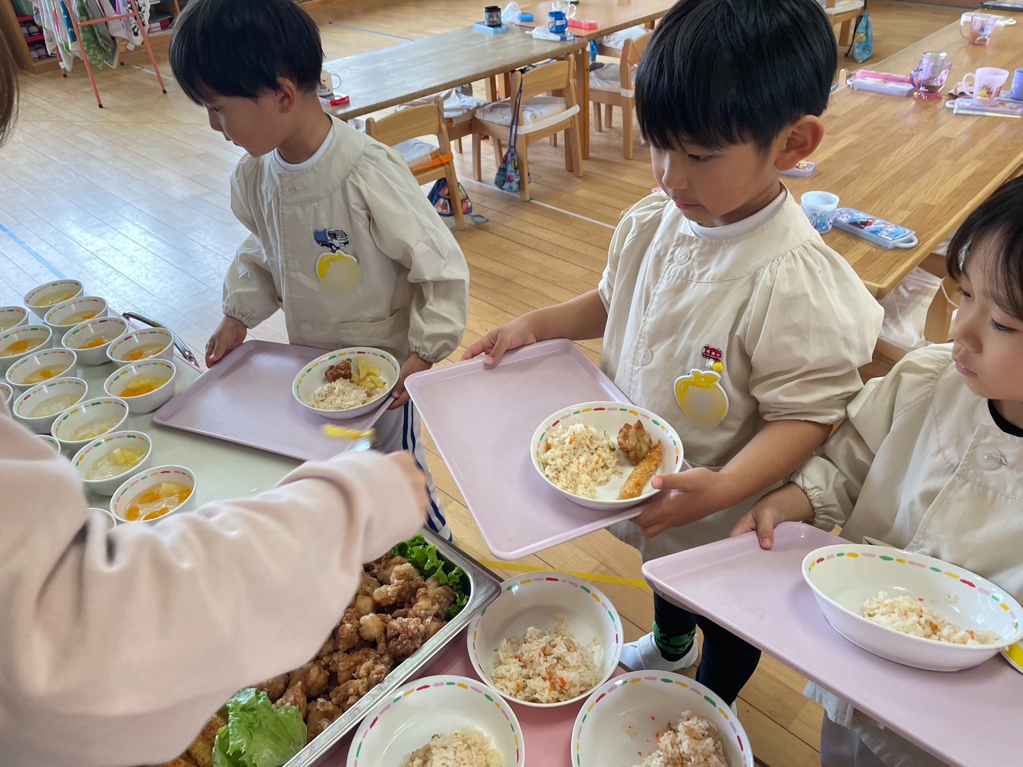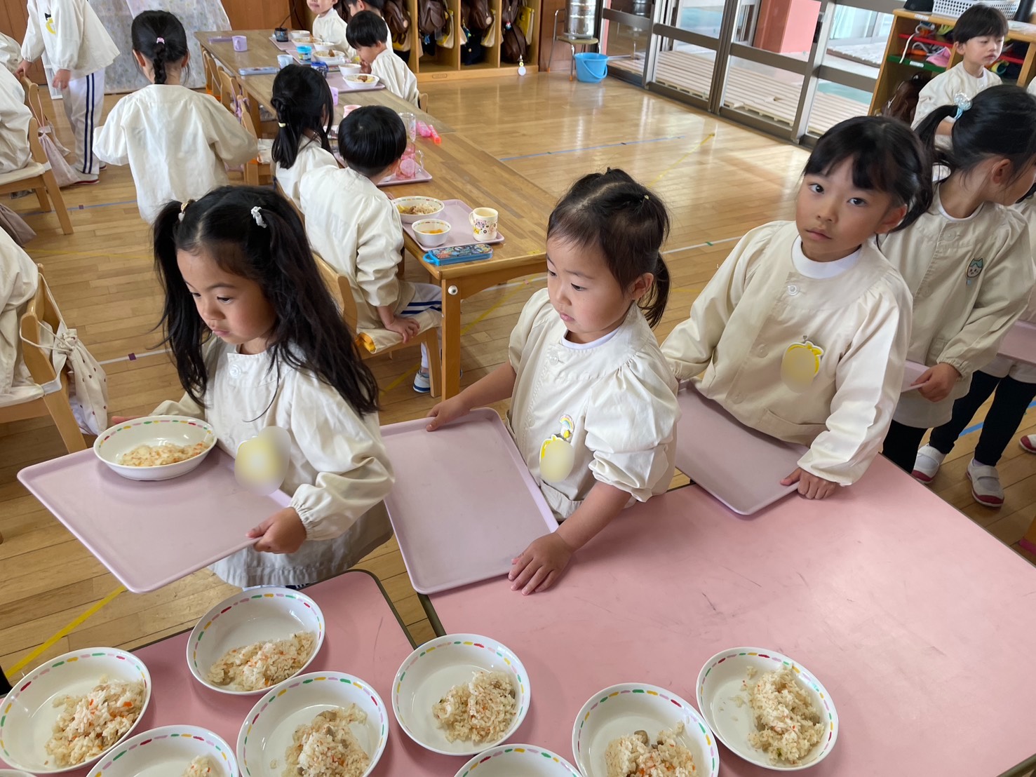 年中と年長組は自分の食べられるものをもらいみんなで食べました